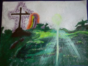 Painting Revelation: Father, Son and Holy Spirit setting alight His Bride to light the smouldering embers of the lost the least and the broken crying out for deliverance from oppression.